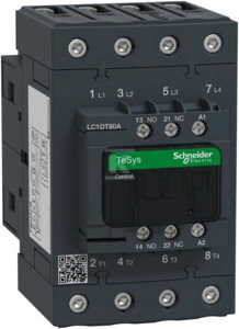 Stycznik mocy TeSys D AC1 80A 4P 1NO 1NC cewka 230VAC zaciski EVK skrzynkowe o numerze katalogowym LC1DT80AP7 w kategorii Styczniki>Styczniki typ AC. Produkt wyprodukowany przez markę SCHNEIDER ELECTRIC, seria TESYS DECA.