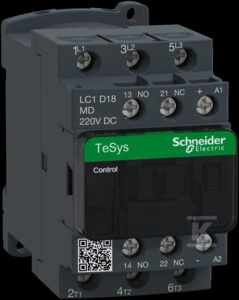 Stycznik mocy TeSys D AC3 18A 3P 1NO 1NC cewka 220VDC o numerze katalogowym LC1D18MD w kategorii Styczniki>Styczniki typ DC. Produkt wyprodukowany przez markę SCHNEIDER ELECTRIC, seria TESYS DECA.