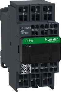 Stycznik mocy TeSys D AC3 25A 3P 1NO 1NC cewka 24VDC zaciski sprężynowe o numerze katalogowym LC1D253BD w kategorii Styczniki>Styczniki typ DC. Produkt wyprodukowany przez markę SCHNEIDER ELECTRIC, seria TESYS DECA.
