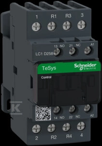 Stycznik mocy TeSys Deca, AC1, 40A 4P 2NO 2NC cewka 24VAC zaciski śrubowe o numerze katalogowym LC1D258B7 w kategorii Styczniki>Styczniki typ AC. Produkt wyprodukowany przez markę SCHNEIDER ELECTRIC, seria TESYS DECA.