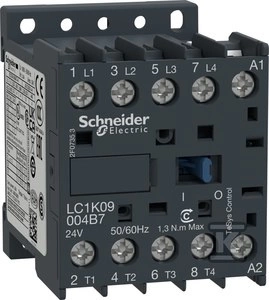 Stycznik mocy TeSys K, AC1, 20A 4P 4NO, cewka 24VAC, zaciski śrubowe o numerze katalogowym LC1K09004B7 w kategorii Styczniki>Styczniki typ AC. Produkt wyprodukowany przez markę SCHNEIDER ELECTRIC, seria TESYS K.