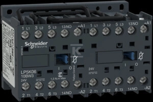 Stycznik nawrotny TeSys K, 9A, 3P, 1NO, cewka 24VDC, zaciski skrzynkowe o numerze katalogowym LP5K0910BW3 w kategorii Styczniki>Styczniki typ DC. Produkt wyprodukowany przez markę SCHNEIDER ELECTRIC, seria TESYS K.
