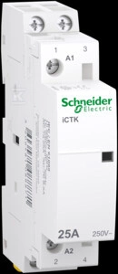 Stycznik modułowy, Acti9 iCTK50-25-20-230 25A 2NO 50Hz 230/240 VAC, bez możliwości rozbudowy o styki pomocnicze o numerze katalogowym A9C40225 w kategorii Styczniki instalacyjne, Styczniki. Produkt wyprodukowany przez markę SCHNEIDER ELECTRIC.