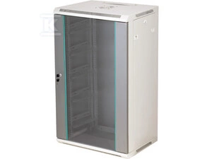 Szafka rack wisząca 19" 15U 600x450, niedzielona, drzwi szklane jednoskrzydłowe, tył osłona pełna, osłony boczne zamykane na klucz, kolor szary Q-LANTEC o numerze katalogowym SW-15U-600-450-N-DSJ-OP-RP-B-S w kategorii Szafy i wyposażenie IT, Infrastruktura IT. Produkt wyprodukowany przez markę A-LAN, seria 15U.