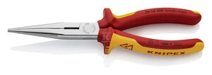 Szczypce tnące półokrągłe wydłużone (bociani dziób) z nasadkami wielokomponentowymi, izolowane wg VDE chromowany 200 mm o numerze katalogowym 26 16 200 w kategorii Wkrętaki i szczypce>Szczypce. Produkt wyprodukowany przez markę KNIPEX.