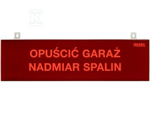 Tablica ostrzegawacza "Opuścić garaż nadmiar spalin" 230V tablica ostrzegawcza dwustronna "OPUŚCIĆ GARAŻ NADMIAR SPALIN", Sygnalizacja optyczna pulsująca, czerwona LED, sygnalizacja akustyczna 65 dB/1m, napięcie zasilania 230 V o numerze katalogowym TP-4.D/H2 w kategorii Detektory gazów stacjonarne>Systemy alarmowe gazów i spalin. Produkt wyprodukowany przez markę GAZEX, seria TP-4.D.