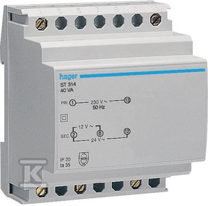 Transformator bezpieczeństwa 230/12-24VAC 40VA o numerze katalogowym ST314 w kategorii Pozostałe, Niesklasyfikowane..