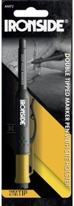 Trwały marker Ironside czarny z dwiema końcówkami o numerze katalogowym 502311221 w kategorii Kredki, ołówki, markery itp.., Narzędzia budowlane. Produkt wyprodukowany przez markę IRONSIDE.