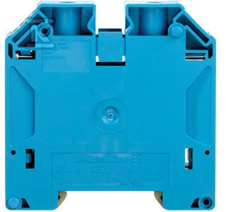 Złączka szynowa przelotowa WDU 50N BL o numerze katalogowym  1820850000 w kategorii Złączki i zaciski ochronne śrubowe, Złączki listwowe śrubowe. Produkt wyprodukowany przez markę WEIDMULLER, seria WDU.