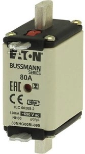Wkładka NH 80A 690V gG rozmiar 00 80NHG00BI-690 o numerze katalogowym  80NHG00BI-690 w kategorii Wkładki bezpiecznikowe NH00, Wkładki bezpiecznikowe NH. Produkt wyprodukowany przez markę EATON.