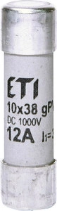 Wkładka cylindryczna PV topikowa CH10x38 gPV 12A/1000V DC 002625077 ETI o numerze katalogowym 002625077 w kategorii Wkładki bezpiecznikowe cylindryczne 10x38, Wkładki bezpiecznikowe cylindryczne. Produkt wyprodukowany przez markę ETI.