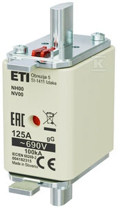 Wkładka topikowa przemysłowa zwłoczna KOMBI NH00 GG 125A/690V o numerze katalogowym 004182315 w kategorii Wkładki bezpiecznikowe NH00, Wkładki bezpiecznikowe NH. Produkt wyprodukowany przez markę ETI.