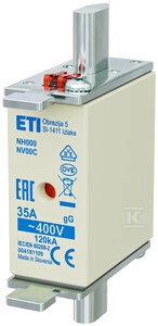 Wkładka topikowa przemysłowa zwłoczna KOMBI-400V NH000 GG 35A/400V o numerze katalogowym 004181109 w kategorii Wkładki bezpiecznikowe NH000, Wkładki bezpiecznikowe NH. Produkt wyprodukowany przez markę ETI.
