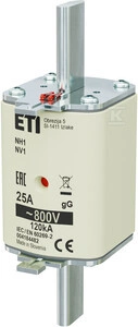 Wkładka topikowa zwłoczna - 800V - KOMBI NH1 GG 25A/800V o numerze katalogowym  004184482 w kategorii Wkładki bezpiecznikowe NH1, Wkładki bezpiecznikowe NH. Produkt wyprodukowany przez markę ETI.