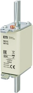 Wkładka topikowa przemysłowa szybka NH1C GF 63A/400V o numerze katalogowym  004139205 w kategorii Wkładki bezpiecznikowe NH1C, Wkładki bezpiecznikowe NH. Produkt wyprodukowany przez markę ETI.