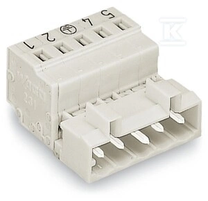 Wtyk 1-przewodowy, CAGE CLAMP®, 2,5 mm2, raster 5 mm, 5-biegunowe wyprzedzający styk PE, 100% ochrona przed błędnym połączeniem, TS 35/montaż na płycie, stopki zatrzaskowe, z nadrukiem bezpośrednim, 2,50 mm2, jasnoszary o numerze katalogowym 721-605/018-042 w kategorii Niesklasyfikowane>Pozostałe. Produkt wyprodukowany przez markę WAGO, seria 721.