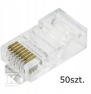 Wtyk RJ 45 Cat5e bezbarwny 8p8c UTP, drut (50 szt.) o numerze katalogowym 19-0019 w kategorii Gniazda i akcesoria IT, Infrastruktura IT. Produkt wyprodukowany przez markę SABAJ, seria AKCESORIA 19".