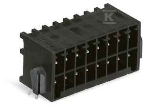 Wtyk THR 2-rzędowy, pin lutowniczy 0,8 x 0,8 mm, konstrukcja kątowa, 100% ochrona przed błędnym połączeniem, blokada, raster 3,5 mm, 34-biegunowe czarny o numerze katalogowym 713-1437/116-000 w kategorii Niesklasyfikowane>Pozostałe. Produkt wyprodukowany przez markę WAGO, seria 713.