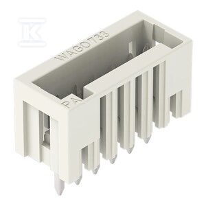Wtyk THT, pin lutowniczy 0,8 x 0,8 mm, konstrukcja prosta, 100% ochrona przed błędnym połączeniem, raster 2,5 mm, 5-biegunowe jasnoszary o numerze katalogowym 733-335 w kategorii Niesklasyfikowane>Pozostałe. Produkt wyprodukowany przez markę WAGO, seria 733.
