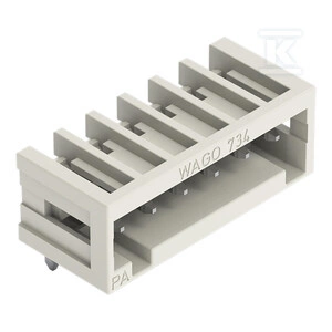 Wtyk THT, pin lutowniczy 1,0 x 1,0 mm, konstrukcja kątowa, 100% ochrona przed błędnym połączeniem, raster 3,5 mm, 6-biegunowe jasnoszary o numerze katalogowym 734-166 w kategorii Niesklasyfikowane>Pozostałe. Produkt wyprodukowany przez markę WAGO, seria 734.