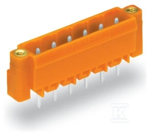Wtyk THT, pin lutowniczy 1,0 x 1,0 mm, konstrukcja prosta, gwintowy uchwyt montażowy, raster 5,08 mm, 6-biegunowe pomarańczowy o numerze katalogowym 231-336/108-000 w kategorii Niesklasyfikowane>Pozostałe. Produkt wyprodukowany przez markę WAGO, seria 231.