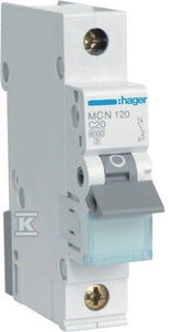 Wyłącznik nadmiarowo-prądowy, 6kA, charakterystyka C, 1-biegunowy, 20A o numerze katalogowym  MCN120E w kategorii Wyłączniki nadprądowe 6kA, Wyłączniki nadprądowe. Produkt wyprodukowany przez markę HAGER.