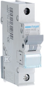 Wyłącznik nadmiarowo-prądowy, 6kA, charakterystyka B, 1-biegunowy, 40A o numerze katalogowym  MBN140E w kategorii Wyłączniki nadprądowe 6kA, Wyłączniki nadprądowe. Produkt wyprodukowany przez markę HAGER.