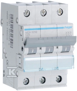 Wyłącznik nadmiarowo-prądowy, 6kA, charakterystyka C, 3-biegunowy, 25A o numerze katalogowym  MCN325E w kategorii Wyłączniki nadprądowe 6kA, Wyłączniki nadprądowe. Produkt wyprodukowany przez markę HAGER.