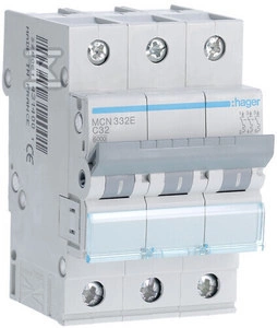 Wyłącznik nadmiarowo-prądowy, 6kA, charakterystyka C, 3-biegunowy, 32A o numerze katalogowym  MCN332E w kategorii Wyłączniki nadprądowe 6kA, Wyłączniki nadprądowe. Produkt wyprodukowany przez markę HAGER.