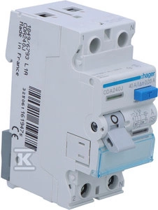 Wyłącznik różnicowoprądowy 40A, 30mA, 2 biegunowy, typ A o numerze katalogowym CDA240J w kategorii Wyłączniki różnicowoprądowe typ A, Wyłączniki różnicowoprądowe. Produkt wyprodukowany przez markę HAGER.
