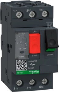 Wyłącznik silnikowy GV2ME..AP 1,6-2,5A zaciski skrzynkowe o numerze katalogowym GV2ME07AP w kategorii Wyłączniki silnikowe, Sterowanie i zabezpieczenie silników. Produkt wyprodukowany przez markę SCHNEIDER ELECTRIC, seria MAŁA AUTOMATYKA.