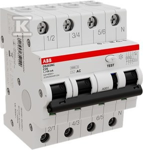 Wyłącznik różnicowo-nadprądowy, 3P+N, charakterystyka C, 25A, 6kA, 30mA, AC, bezzwłoczny DS203NC C25 AC30 o numerze katalogowym 2CSR256040R1254 w kategorii Wyłączniki różnicowoprądowe nadprądowe>Wyłączniki różnicowoprądowe z członem nadprądowym typ AC. Produkt wyprodukowany przez markę ABB, seria DS203NC.