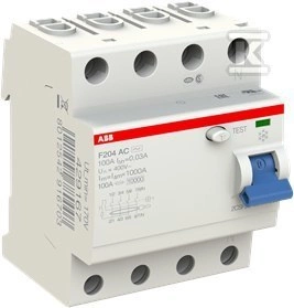 Wyłącznik różnicowo-prądowy, 4P, AC, 100A, 30mA, bezzwłoczny F204 AC-100/0.03 o numerze katalogowym 2CSF204001R1900 w kategorii Wyłączniki różnicowoprądowe>Wyłączniki różnicowoprądowe typ AC. Produkt wyprodukowany przez markę ABB, seria F200.