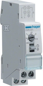 Wyłącznik schodowy, 30s-10min o numerze katalogowym EMN001 w kategorii Przekaźniki czasowe, Przekaźniki. Produkt wyprodukowany przez markę HAGER.
