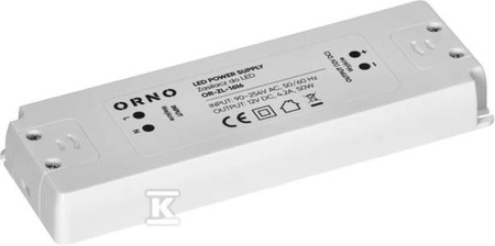 Zasilacz do LED 12VDC 50W, IP20 o numerze katalogowym OR-ZL-1616 w kategorii Zasilacze do LED, Zasilanie oświetlenia. Produkt wyprodukowany przez markę ORNO.