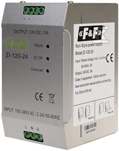 Zasilacz impulsowy przemysłowy nap. wej. 90÷264v ac/120÷370v dc, p=120w nap. wyj. 24v dc ZI-120-24V o numerze katalogowym  ZI-120-24V w kategorii Zasilacze i transformatory, Aparatura sterująca. Produkt wyprodukowany przez markę F&F.