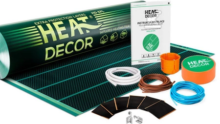 Zestaw folii grzewczej HD-EPL 140 W/m², szerokość 100 cm - bez termostatu - konektor BX - 8m² o numerze katalogowym Z/EPL140/BT/BX/8 w kategorii Zestawy folii grzewczych, Folie grzewcze. Produkt wyprodukowany przez markę HEAT DECOR.