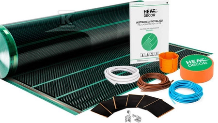 Zestaw folii grzewczej HD-G 80 W/m², szerokość 100 cm - bez termostatu - konektor BX - 6m² o numerze katalogowym Z/GRN80/BT/BX/6 w kategorii Zestawy folii grzewczych, Folie grzewcze. Produkt wyprodukowany przez markę HEAT DECOR.