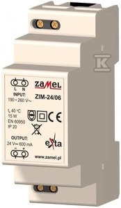 Zasilacz impulsowy 24V DC 0,6A TYP: ZIM-24/06 o numerze katalogowym EXT10000163 w kategorii Zasilacze i transformatory, Aparatura sterująca. Produkt wyprodukowany przez markę ZAMEL, seria EXTA.