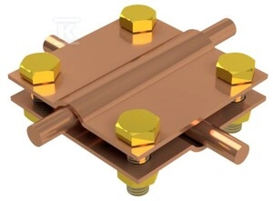 Złącze krzyżowe 4-otworowe, 2 płytkowe, B do 40mm /CU/ o numerze katalogowym AH01052 w kategorii Instalacje odgromowe>Elementy zwodów poziomych. Produkt wyprodukowany przez markę AH.