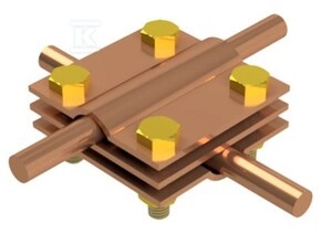 Złącze krzyżowe 4-otworowe, 3 płytkowe, B do 30mm /CU/ o numerze katalogowym AH01042 w kategorii Instalacje odgromowe>Elementy zwodów poziomych. Produkt wyprodukowany przez markę AH.