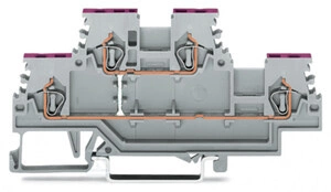 Złączka 2-piętrowa, złączka przelotowa 4-przewodowa, L, do zastosowań Ex i, z mostkowaniem wewnętrznym, otwory na przewody z fiolet. nadrukiem, na szynę TS 35 x 15 i 35 x 7,5, 1,5 mm2, 1,50 mm2, szary o numerze katalogowym 279-508 w kategorii Niesklasyfikowane>Pozostałe. Produkt wyprodukowany przez markę WAGO, seria 279.