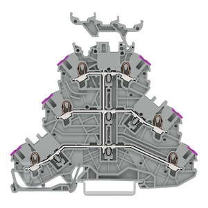 Złączka 3-piętrowa, złączka przelotowa 6-przewodowa, L, z podstawką oznacznika, do zastosowań Ex e II, z mostkowaniem wewnętrznym, otwory na przewody z fiolet. nadrukiem, na szynę TS 35 x 15 i 35 x 7,5, 1 mm2, Push-in CAGE CLAMP®, 1,00 mm2, szary o numerze katalogowym 2000-3238 w kategorii Niesklasyfikowane>Pozostałe. Produkt wyprodukowany przez markę WAGO, seria 2000.