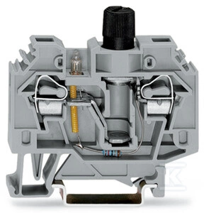 Złączka bezpiecznikowa 2-przewodowa, do aparatowej wkładki bezpiecznikowej 1/4" x 11/4", z sygnalizacją przepalenia wkładki przez neonówkę, na szynę TS 35 x 15 i 35 x 7,5, 6 mm2, CAGE CLAMP®, 6,00 mm2, szary o numerze katalogowym 282-128/281-418 w kategorii Niesklasyfikowane>Pozostałe. Produkt wyprodukowany przez markę WAGO, seria 282.