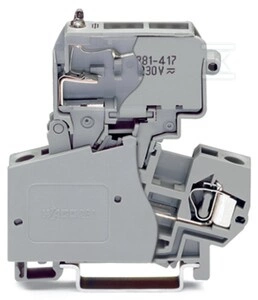 Złączka bezpiecznikowa 2-przewodowa, z uchylną podstawką bezpiecznika, do aparatowej wkładki bezpiecznikowej 1/4" x 1", z sygnalizacją przepalenia wkładki przez neonówkę, 230 V, na szynę TS 35 x 15 i 35 x 7,5, 4 mm2, CAGE CLAMP®, 4,00 mm2, szary o numerze katalogowym 281-613/281-417 w kategorii Niesklasyfikowane>Pozostałe. Produkt wyprodukowany przez markę WAGO, seria 281.