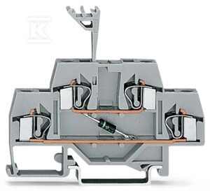 Złączka do zabudowy elementów, 2-piętr., z diodą 1N4007, anoda na dole, na szynę TS 35 x 15 i 35 x 7,5, 4 mm2, CAGE CLAMP®, 4,00 mm2, szary o numerze katalogowym 281-633/281-410 w kategorii Niesklasyfikowane>Pozostałe. Produkt wyprodukowany przez markę WAGO, seria 281.