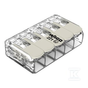 Złączka instalacyjna z dźwignią, do wszystkich rodzajów przewodów, do zastosowań Ex e, maks. 6 mm2, 5-przew., kolor obudowy przezroczysty, temperatura pracy maks. 105°C, 6,00 mm2, transparentny o numerze katalogowym 221-685 w kategorii Niesklasyfikowane>Pozostałe. Produkt wyprodukowany przez markę WAGO, seria 221.